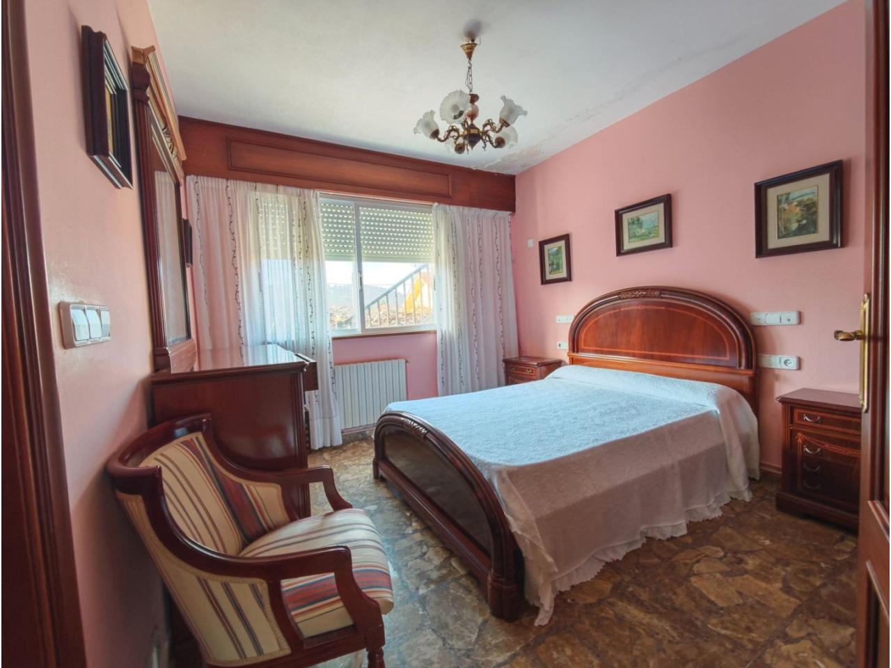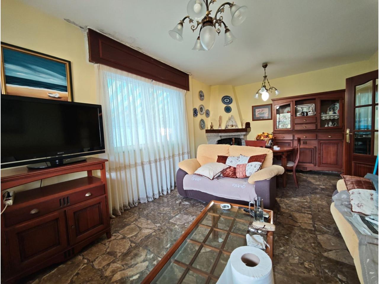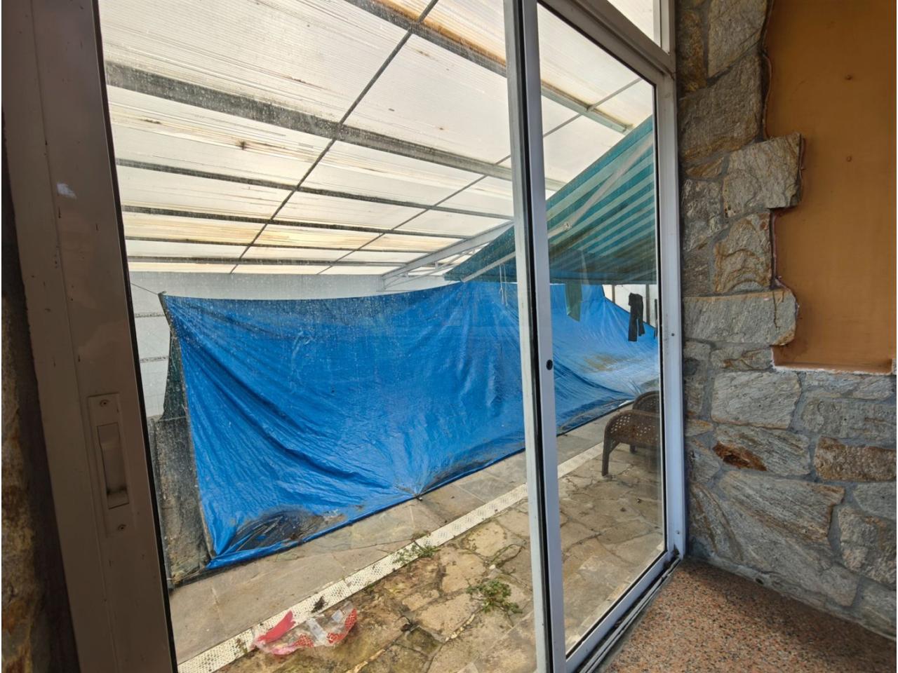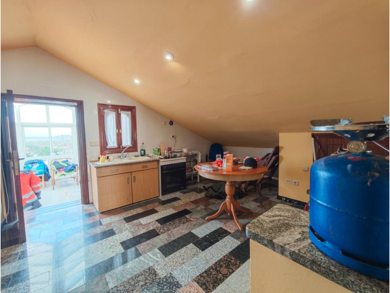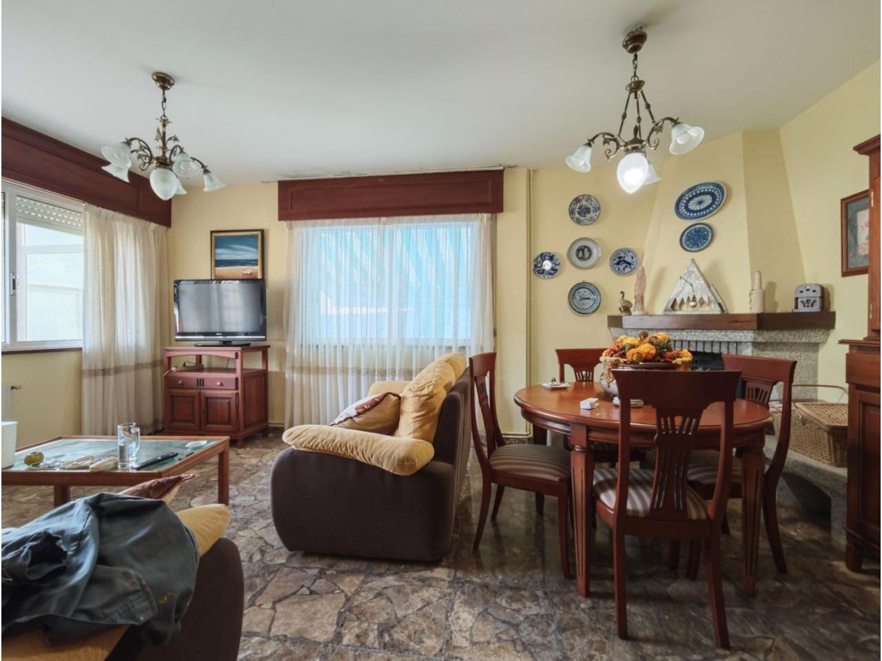 Ref. 341. - Tan solo 400 m son los que separan este chalet de la playa de S. Jorge, una de las playas más exitosas para deportes acuáticos de la comarca. La casa se sitúa sobre dos parcelas haciendo un total de casi 2800 m² de jardín. La casa se distribuye de la siguiente manera: un poche nos da la bienvenida accediendo a la vivienda donde en planta baja tenemos un salón con chimenea, cocina, despensa, baño general con ducha, y tres dormitorios dobles de los cuales el principal en suite con baño con bañera al cual accedemos directamente a través del dormitorio o a través del pasillo. Toda la planta tiene doble ventanal. Saliendo, accedemos a través de unas escaleras a la planta alta, independiente, en donde tenemos una zona de terraza descubierta, zona de terraza cubierta y en el interior cocina americana con comedor, baño, y un buen dormitorio ó salón dependiendo de las necesidades (en la foto sería la zona de sofás) y una habitación interior, perfecta para un dormitorio auxiliar o almacenaje. En el exterior, disfrutaremos de nuestras tardes de verano de una mesa y bancos rodeados de árboles.. . y dos galpones para las gallinas, perros. etc. Por supuesto la piscina cubierta y climatizada a través de las placas térmicas instaladas en el jardín junto con las placas solares (las placas térmicas necesitan arreglos). La piscina cubierta se puede descubrir para disfrutar de los días estivales (necesita arreglos). Por último, el taller equipado con maquinaria en donde están las baterías de las placas. La finca está totalmente cerrada y tiene entrada por dos calles. Calefacción gasoil. Riego automático. MILCASAS Galicia.