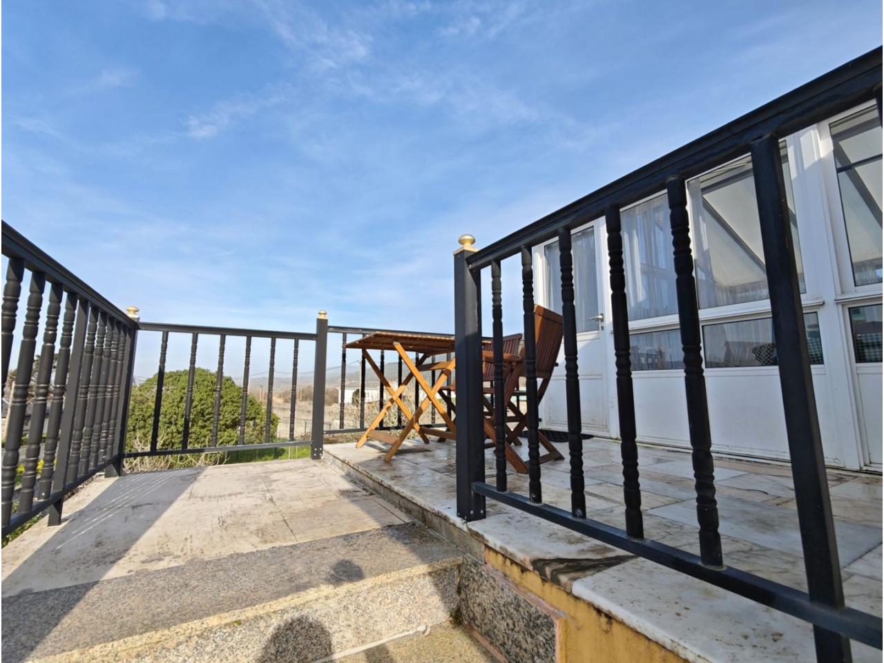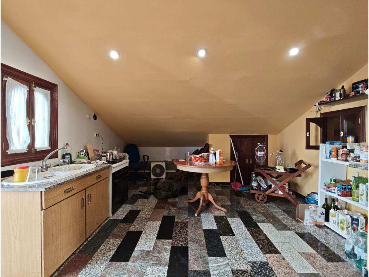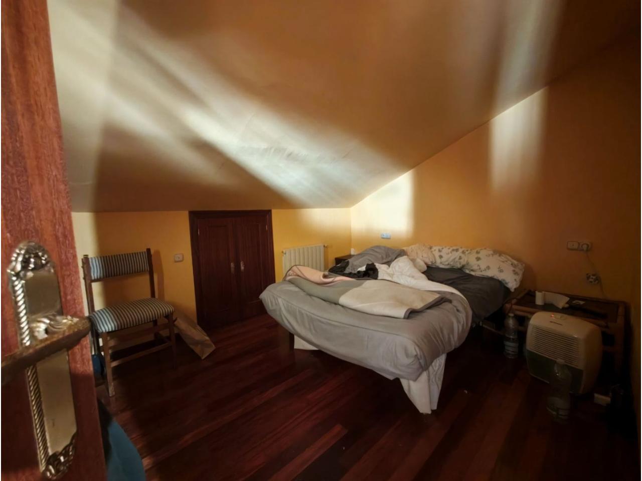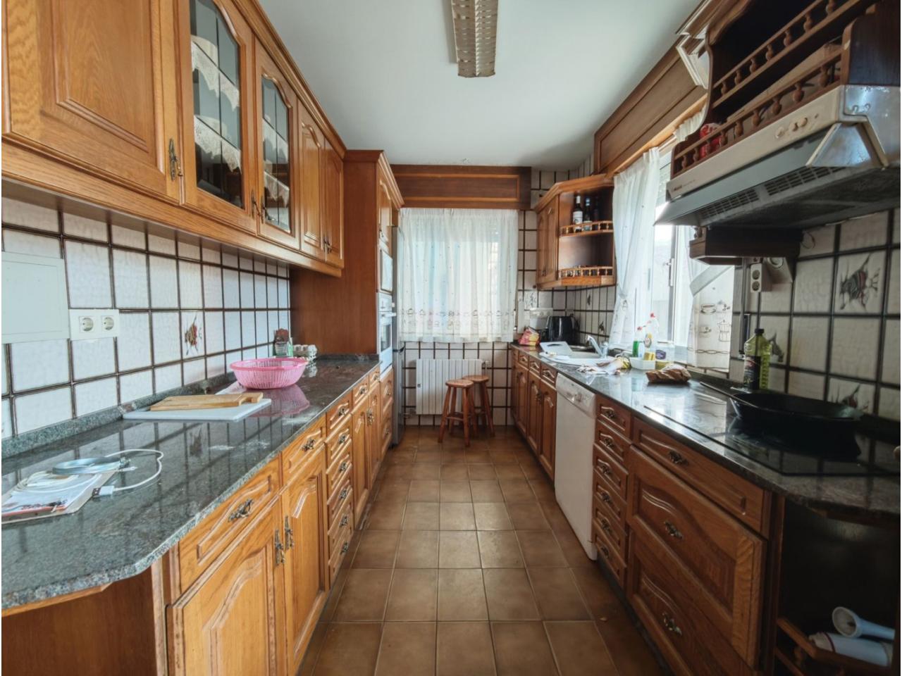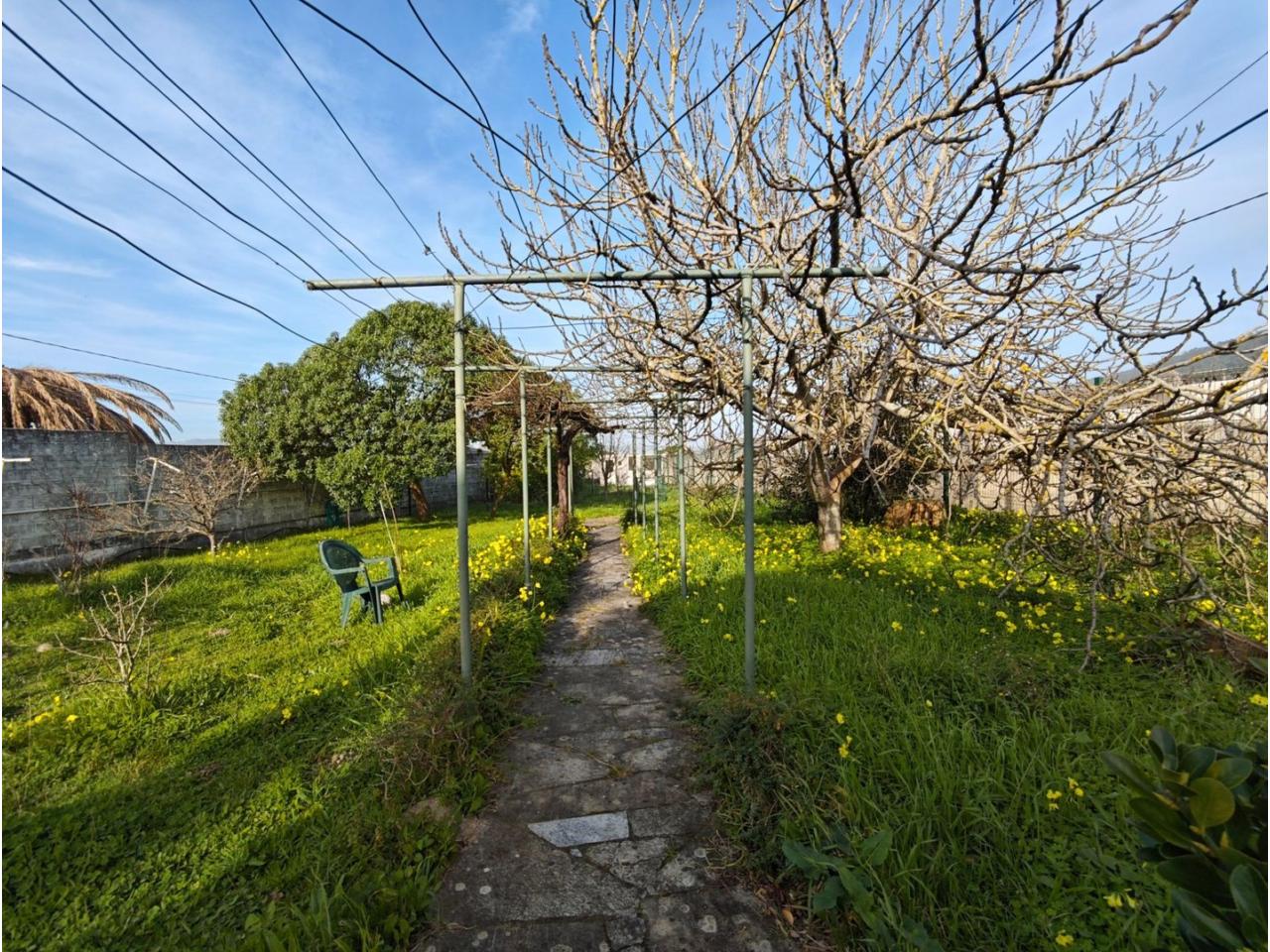 Ref. 341. - Tan solo 400 m son los que separan este chalet de la playa de S. Jorge, una de las playas más exitosas para deportes acuáticos de la comarca. La casa se sitúa sobre dos parcelas haciendo un total de casi 2800 m² de jardín. La casa se distribuye de la siguiente manera: un poche nos da la bienvenida accediendo a la vivienda donde en planta baja tenemos un salón con chimenea, cocina, despensa, baño general con ducha, y tres dormitorios dobles de los cuales el principal en suite con baño con bañera al cual accedemos directamente a través del dormitorio o a través del pasillo. Toda la planta tiene doble ventanal. Saliendo, accedemos a través de unas escaleras a la planta alta, independiente, en donde tenemos una zona de terraza descubierta, zona de terraza cubierta y en el interior cocina americana con comedor, baño, y un buen dormitorio ó salón dependiendo de las necesidades (en la foto sería la zona de sofás) y una habitación interior, perfecta para un dormitorio auxiliar o almacenaje. En el exterior, disfrutaremos de nuestras tardes de verano de una mesa y bancos rodeados de árboles.. . y dos galpones para las gallinas, perros. etc. Por supuesto la piscina cubierta y climatizada a través de las placas térmicas instaladas en el jardín junto con las placas solares (las placas térmicas necesitan arreglos). La piscina cubierta se puede descubrir para disfrutar de los días estivales (necesita arreglos). Por último, el taller equipado con maquinaria en donde están las baterías de las placas. La finca está totalmente cerrada y tiene entrada por dos calles. Calefacción gasoil. Riego automático. MILCASAS Galicia.